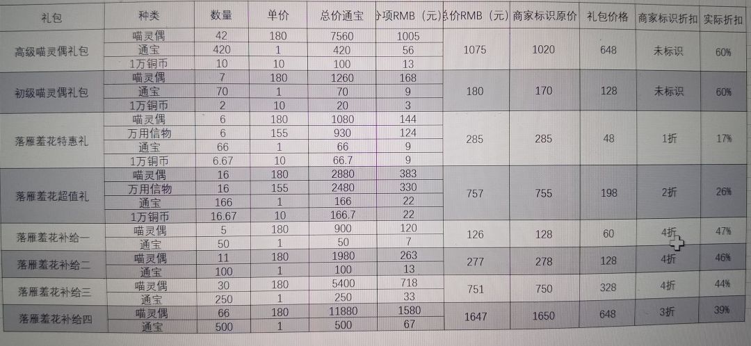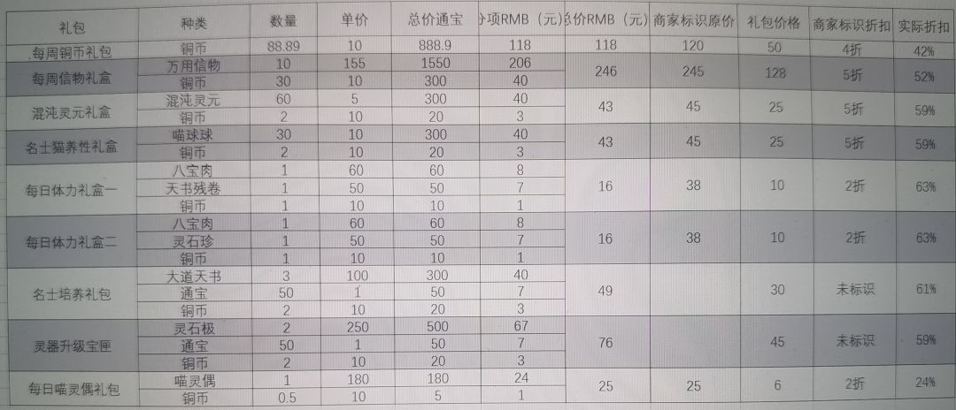 忘川物价和礼包折扣测算表,哪些值得氪