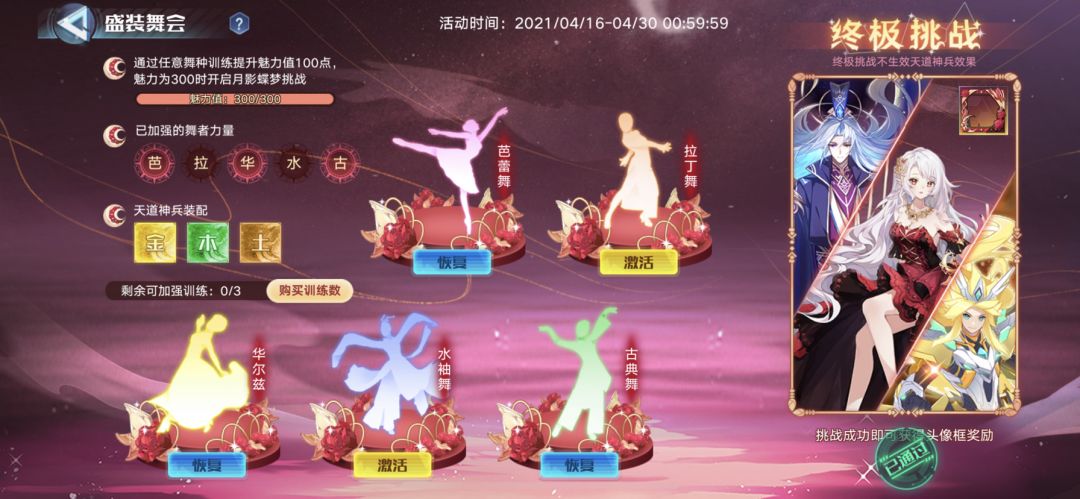 怎么说呢还是挺简单的,加强的舞者力量只要打增伤的那三个就行了,神兵的话我推荐金木土这三种,双攻,体力,双防,很实用的三种,神兵星级越高越好.阵容方面我是乾坤横推,第一种还是很简单的,就算没有乾坤或是练度不够掌握好克制关系也是很好打的,头像框挑战的话,其实难度也不大,枪炮乾坤加上修罗705两只亚比搞定,705先发玄灵甲,剩下的交给乾坤爹,总的来说难度不是很大,打法也有很多种,没有打过的小伙伴可以尝试用一下我推荐的方法试一下