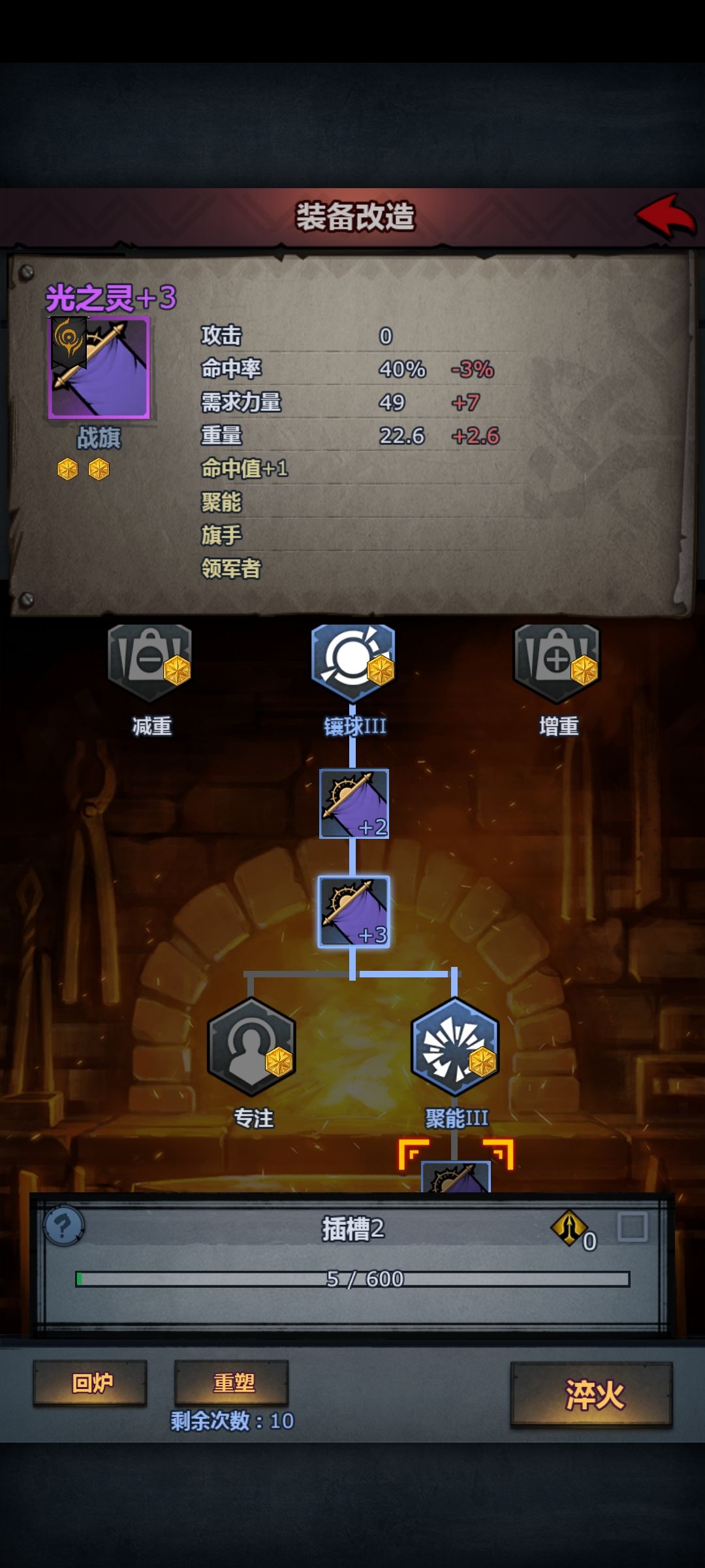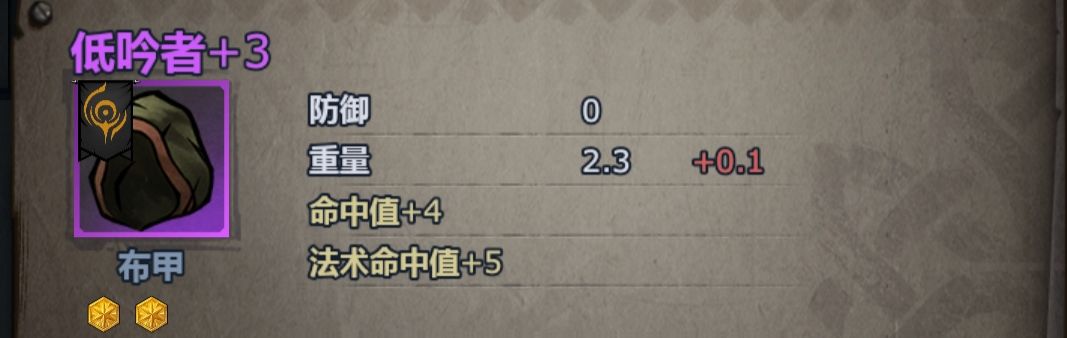 增重v 防御力+1 重量+0.2 赋能 ——法术攻击力+3 重量+0.2 专注v 法术命中值+5 重量+0.2