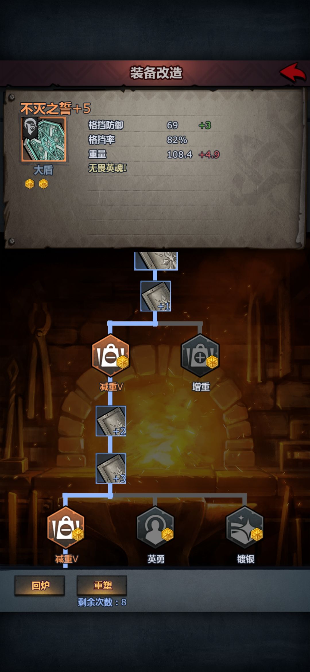收益是 减重(格挡率+13%)—减重(格挡率+8%)—镀银(抵抗值+23)