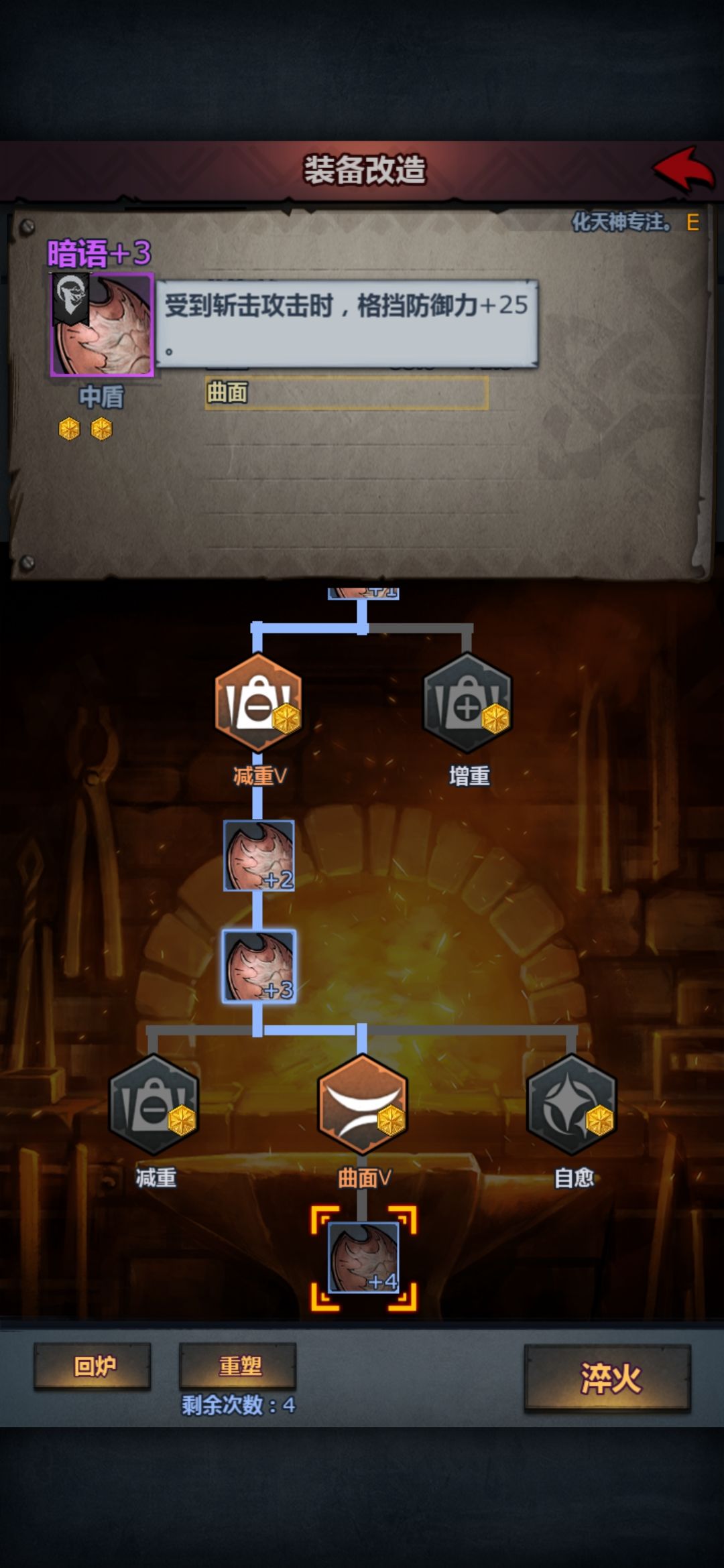 收益是 增重 格挡防御+3 重量+4。