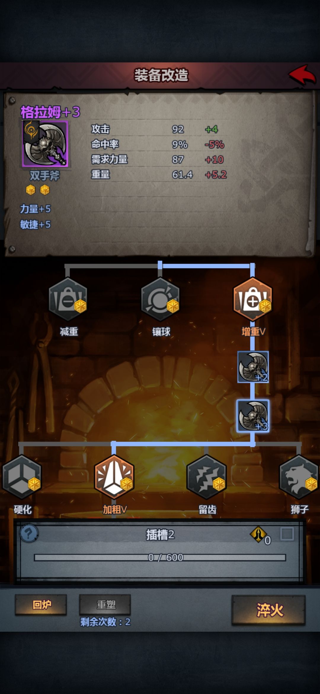 另外一条路线就是增重——硬化——盾甲V(坚韧值+19)