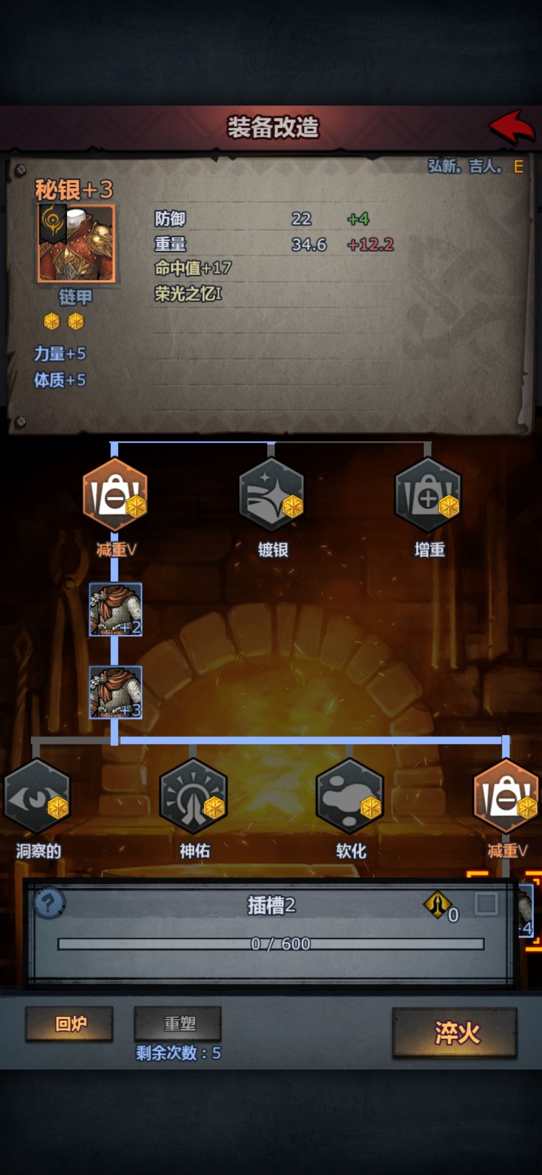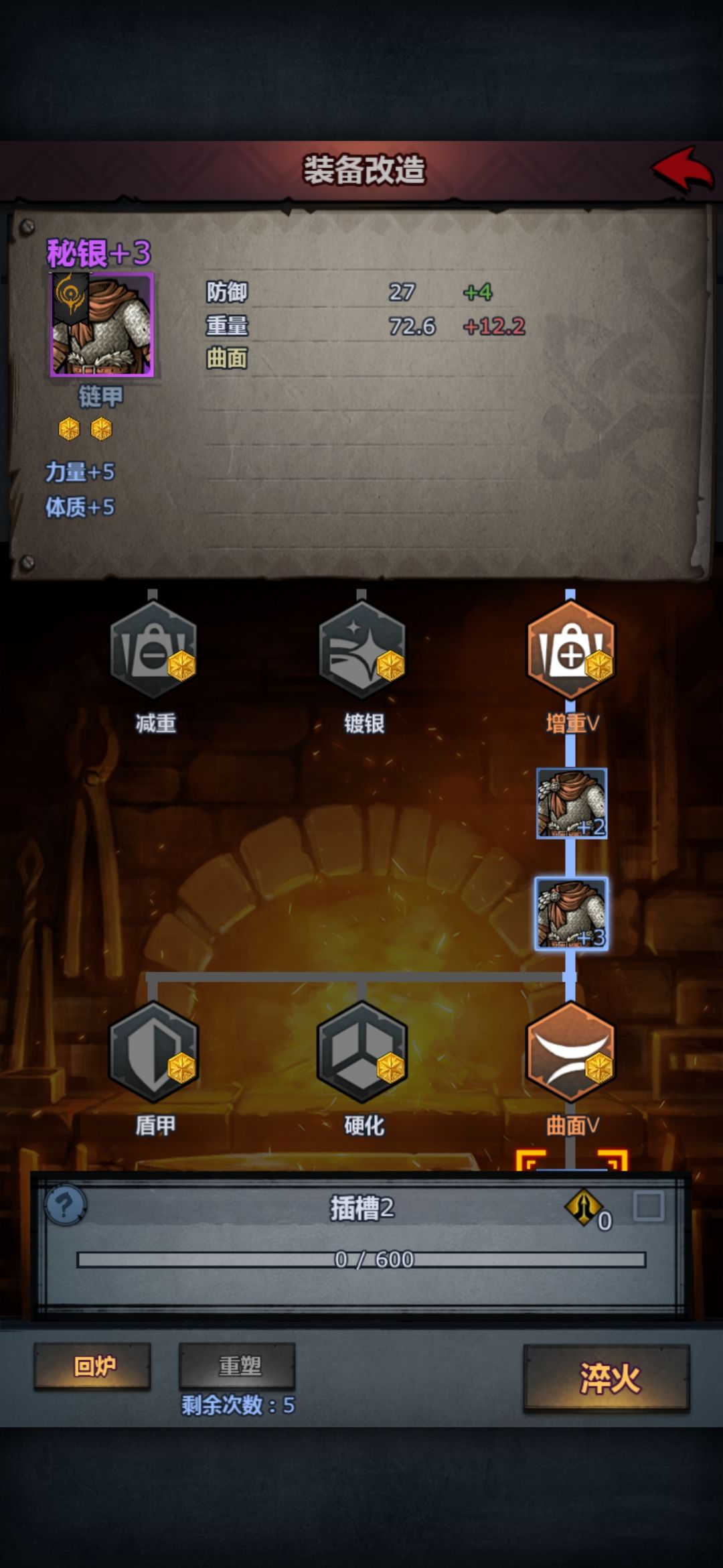增重v防御力+5 重量+2.5 自愈V每回合生命+9 重量+2.5