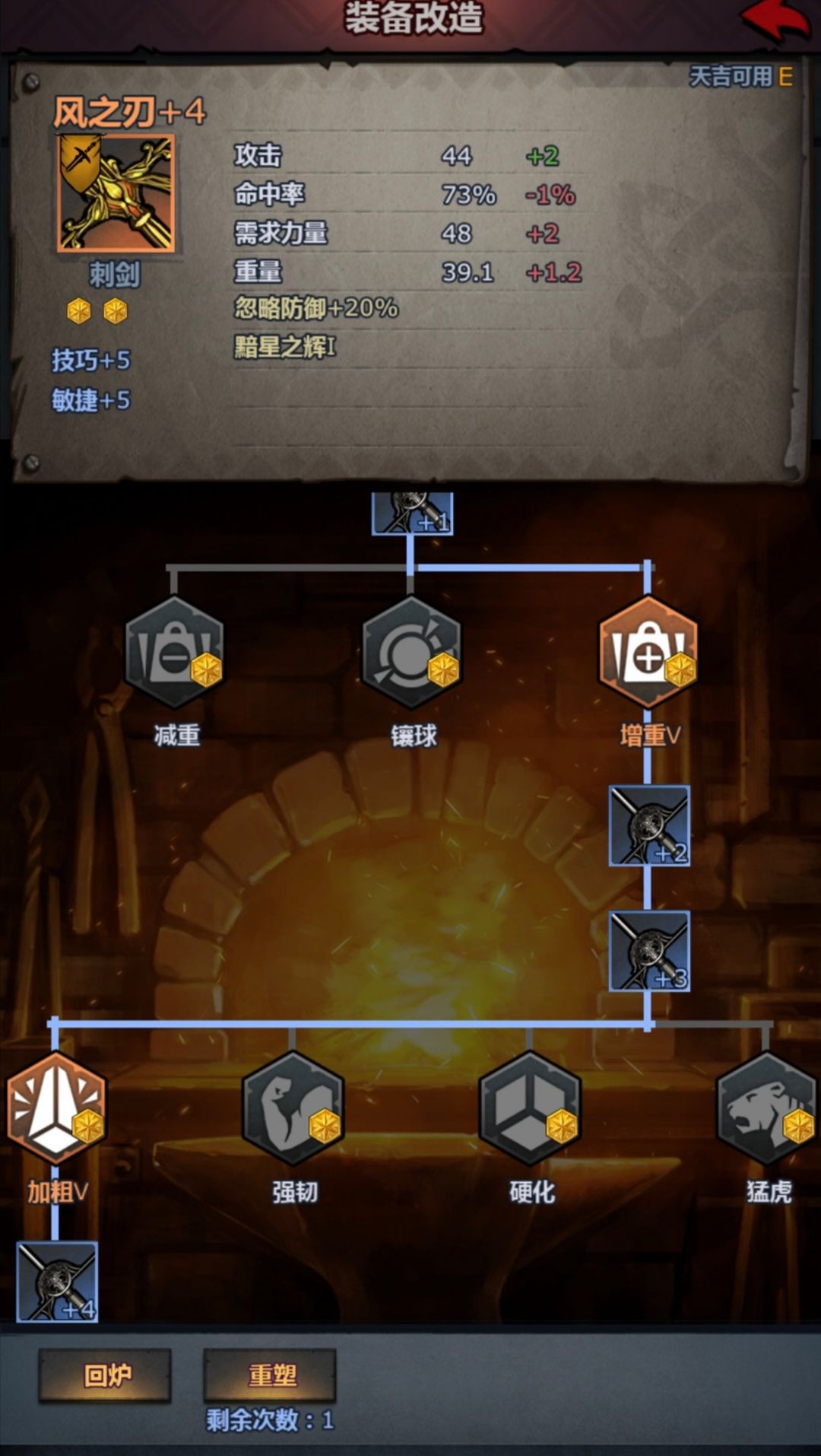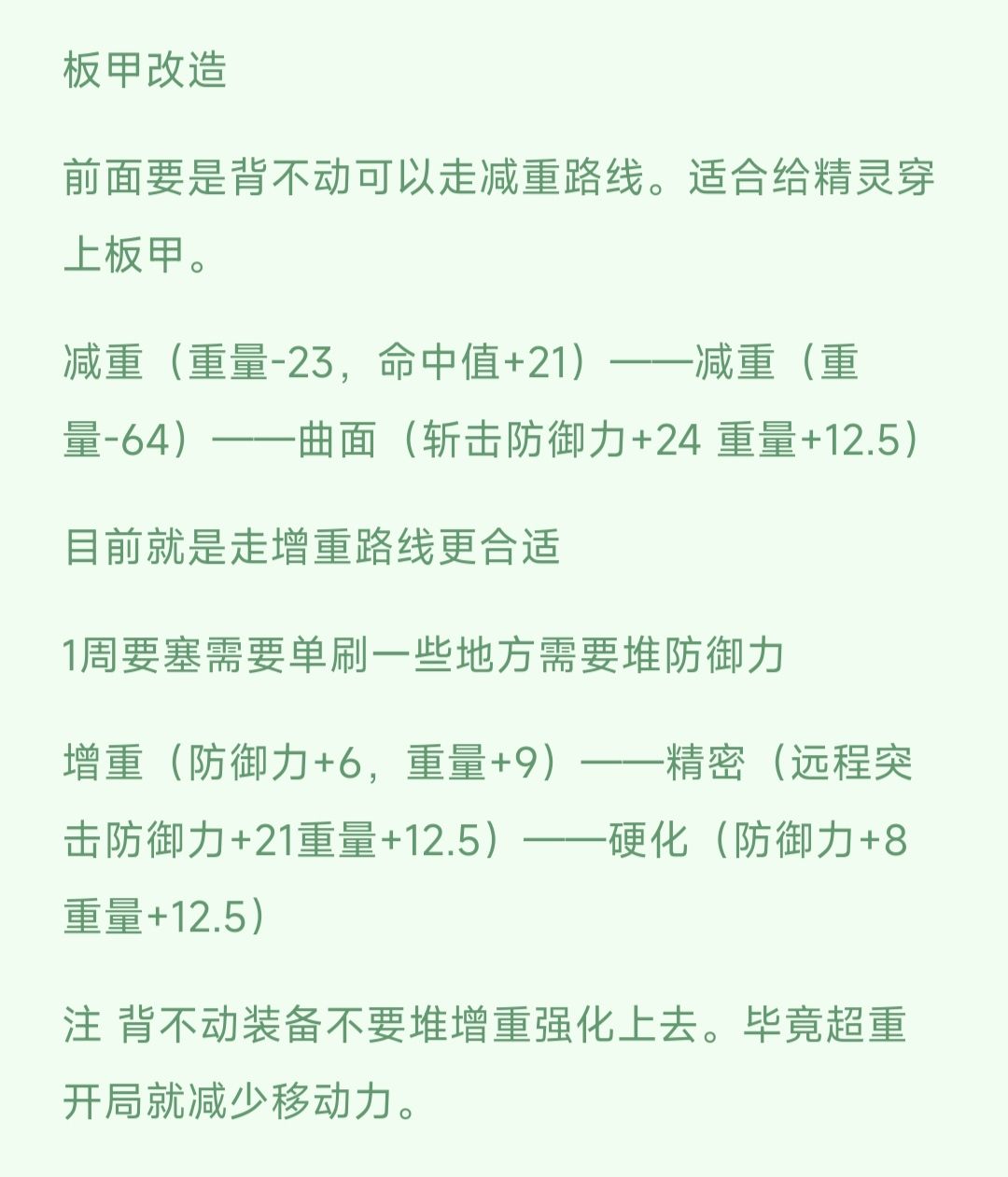 改造路线 增重路线v 防御力+1 重量+1