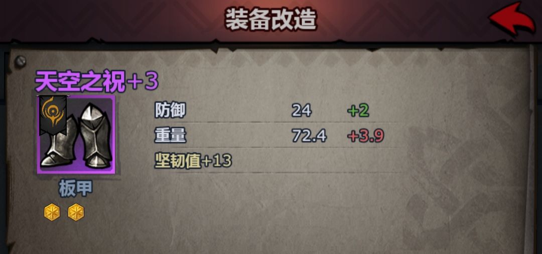 增重路线v防御力+3 重量+1.5 硬化防御力v防御力+4 重量+2