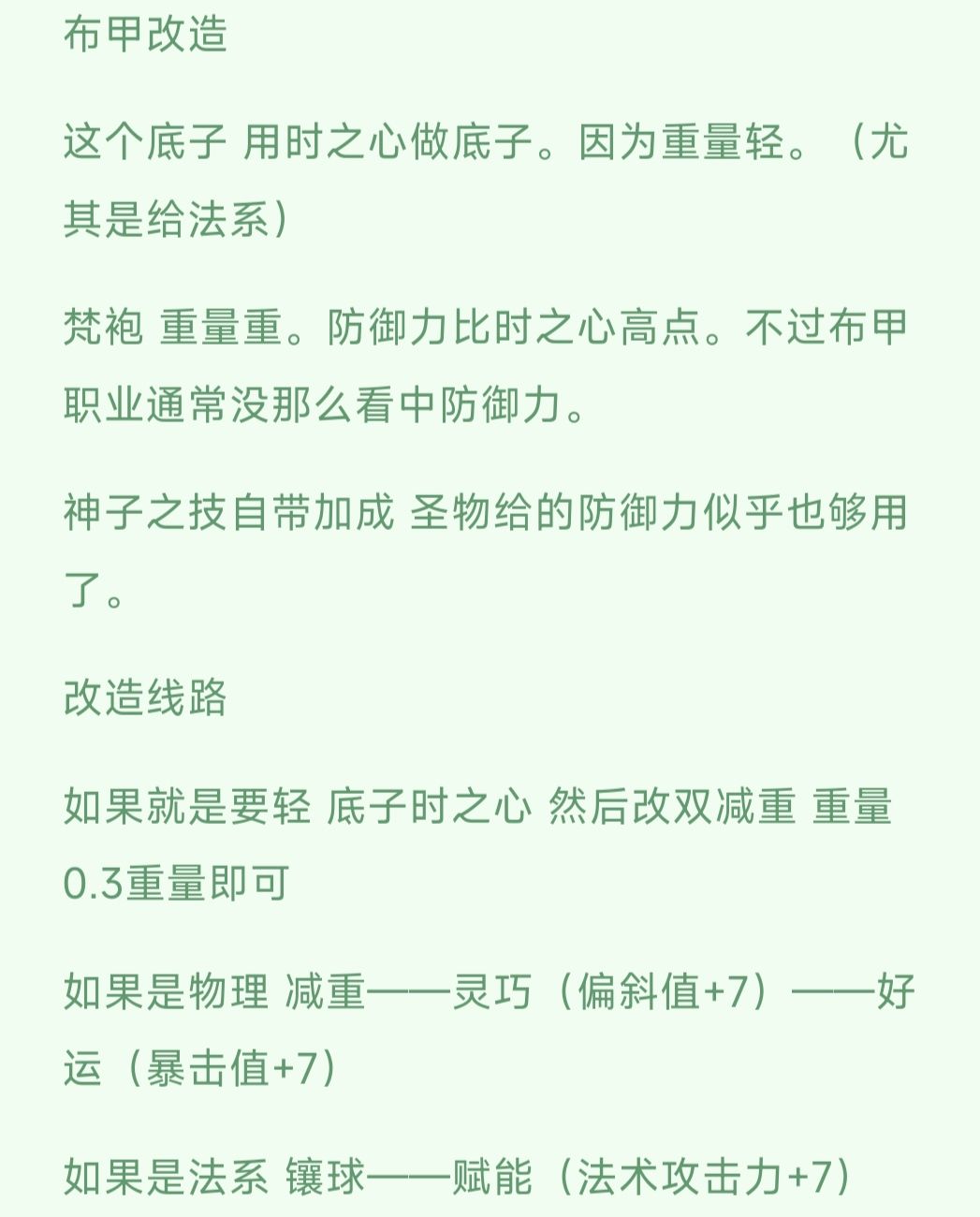 减重路线与法术抵抗值 这些有关 对链甲职业来说帮助不大。