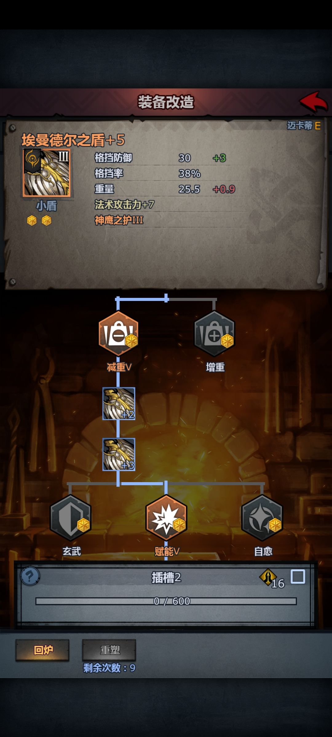 减重v格挡率+4% 重量+1.5—赋能法术攻击力+7