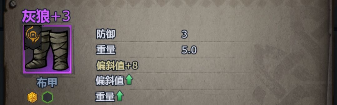 增重v 防御力+2重量+2.5 硬化v防御力+3 重量+2