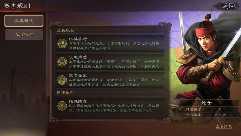 ——同盟建筑“军阵”,可以调动征兵、提升范围内的军事建筑耐久且使非我方城池的九宫图、八卦阵失效。