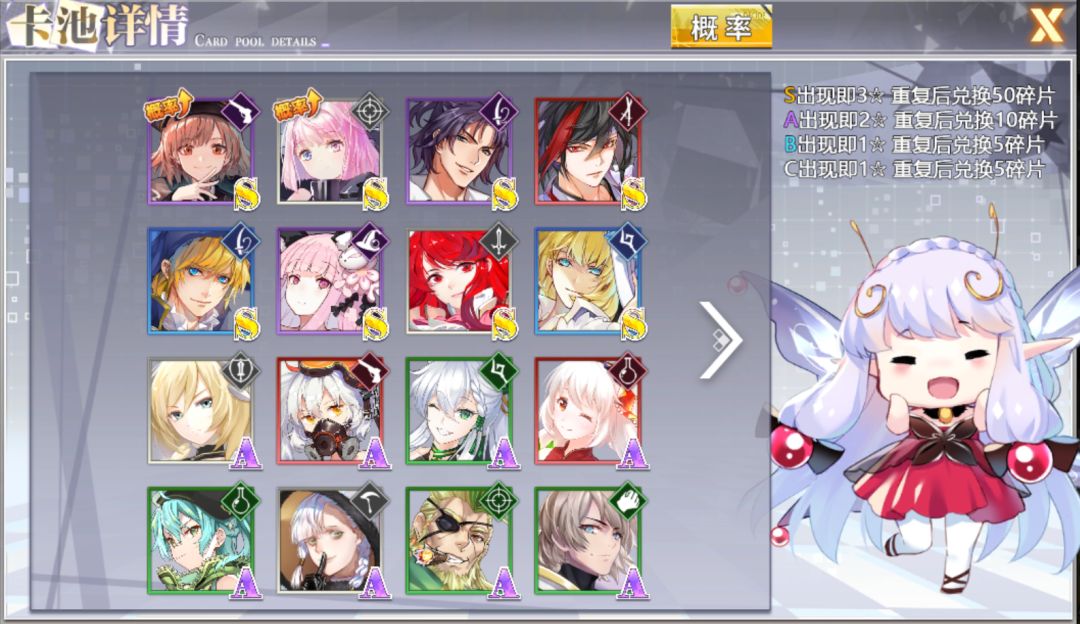 以上两个S是稀有限定S,获得难度不低,而且强度极高。分别是顶配白队和顶配红队可以用到的角色。看到这里,萌新就别再纠结手头物资要不要留着等更划算的东西了吧。接下来讲获取方式你就会发现,真是超低成本,约等于白送,别错过了别犹豫了!