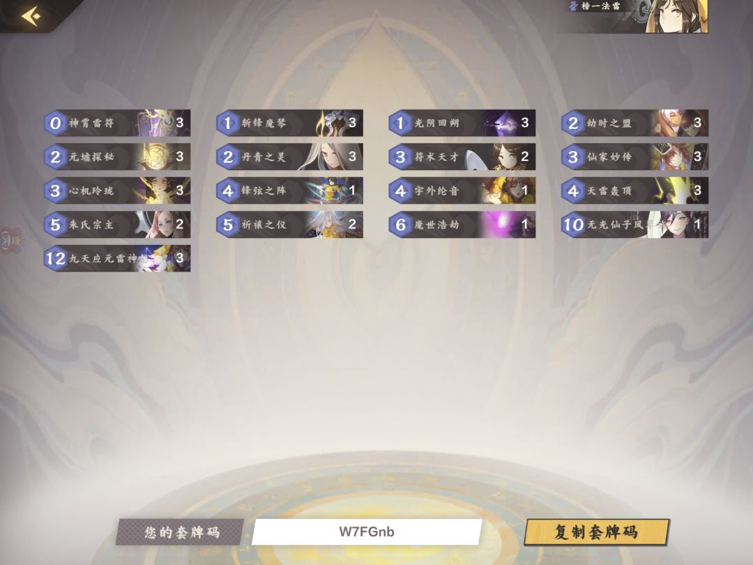 表哥:是的,打灵系完全可以考虑起手留一个九天应元雷神怒。打灵系的话节奏要快一点,拖到后期不好打。前期保护好丹青之灵,灵系可以跳费,雷系可以减费,丹青刷起来了还是可以一战的。