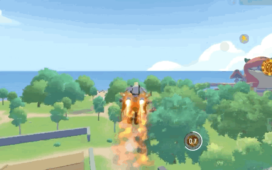 技能一[一飞冲天],释放后可选择落点进行抛物线移动。相当于一个加强版的传送大炮,不会头晕٩(๑^o^๑)۶(重点)