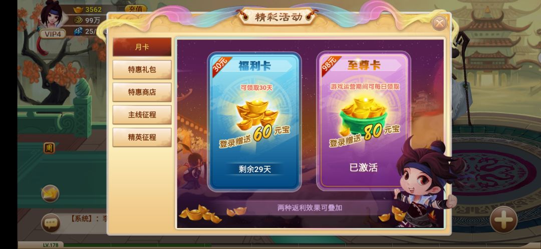为啥开了月卡没有30块首充礼包的活动??