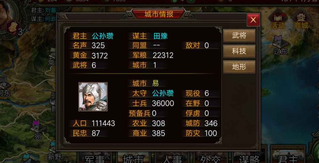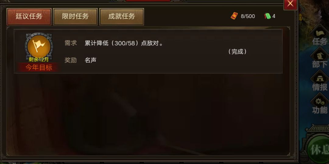 就是选择刘备势力,然后随便进献给公孙瓒一点就能降一大堆敌对,这平时看不出来,但是一旦有个廷议任务就可以一下看到呢!