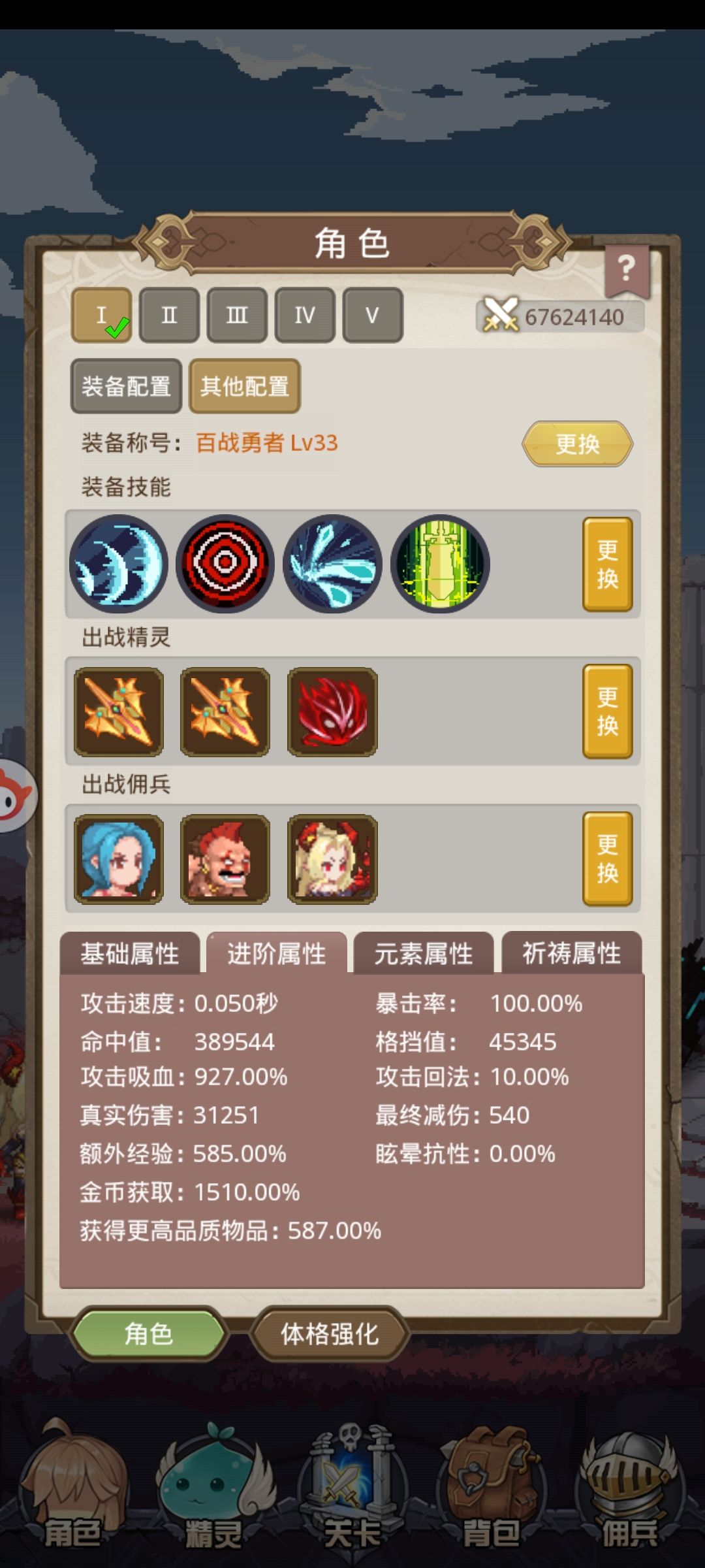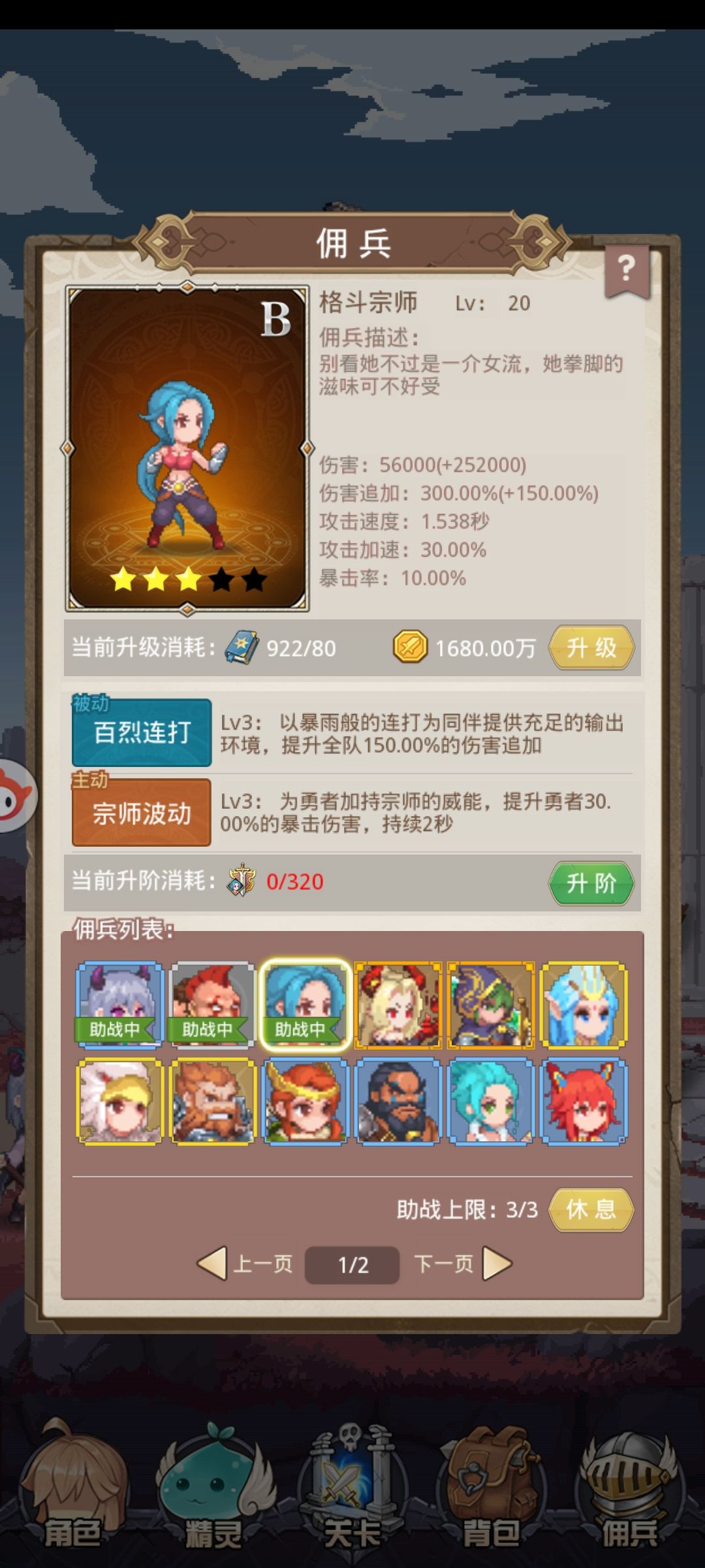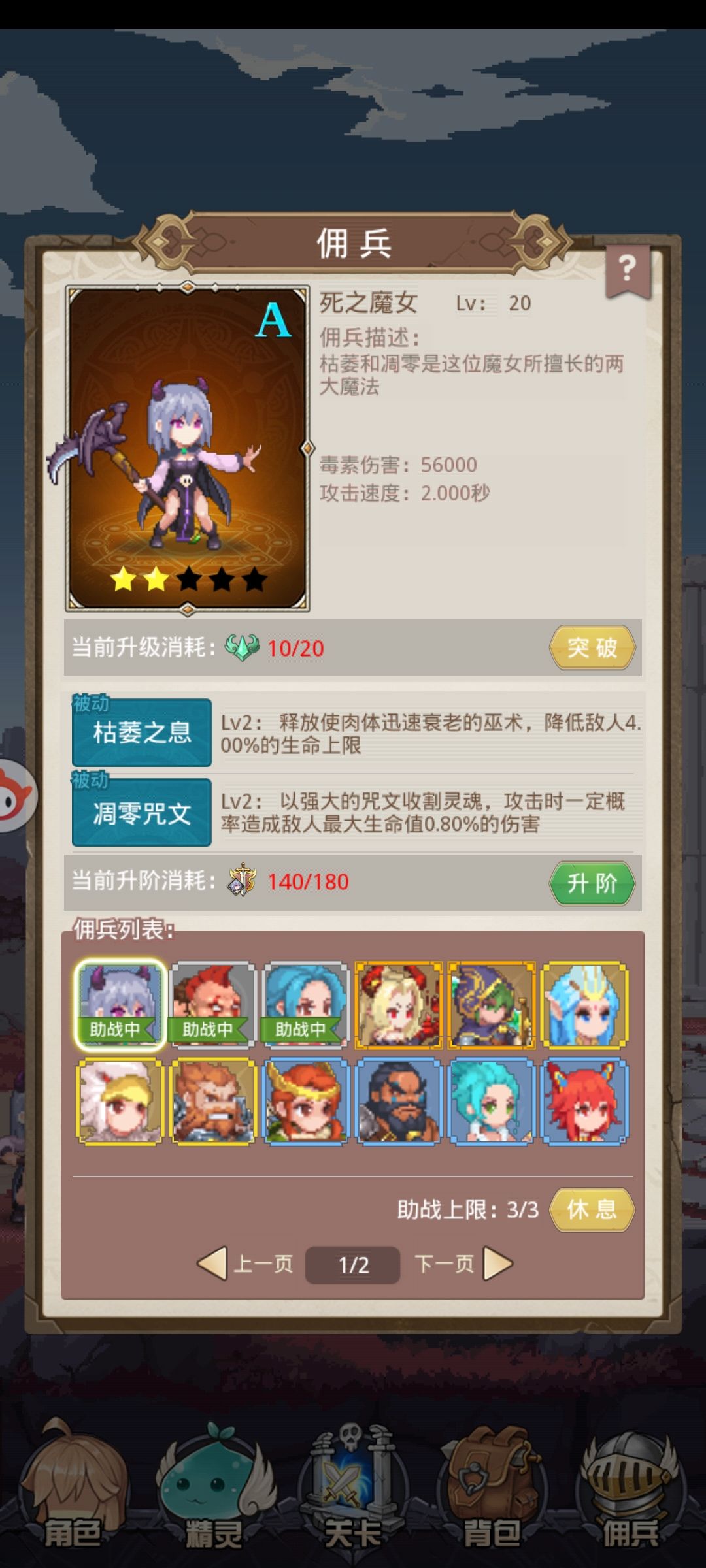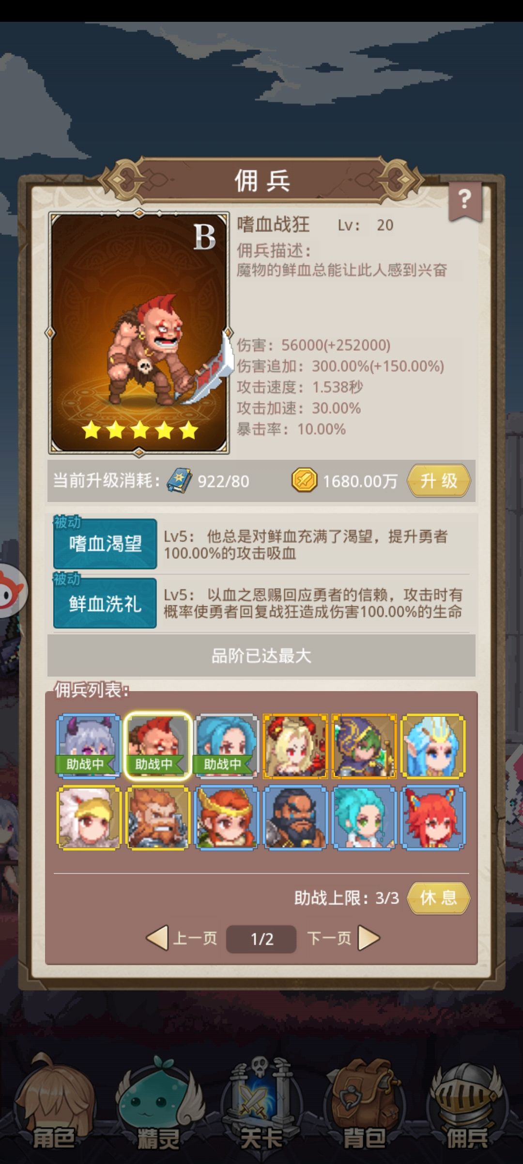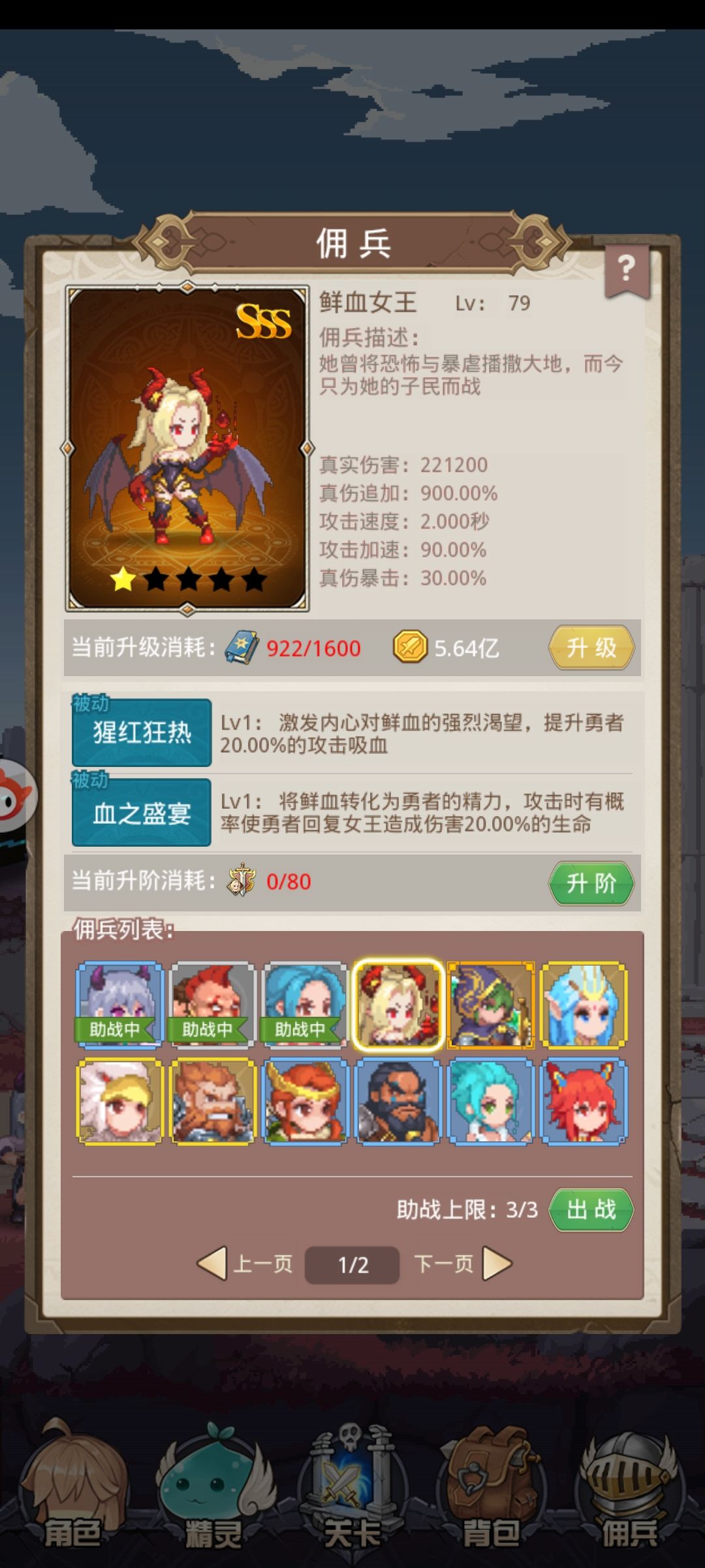 佣兵怎么说呢,我其实是有资源拉满五星格斗和四星死女的,但是奈何旅行商人实在是不给力,连着6天左右都不出,只能如此硬推