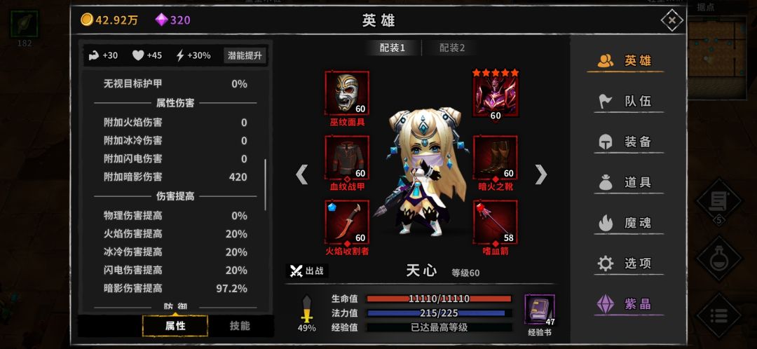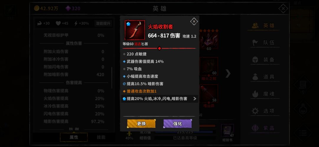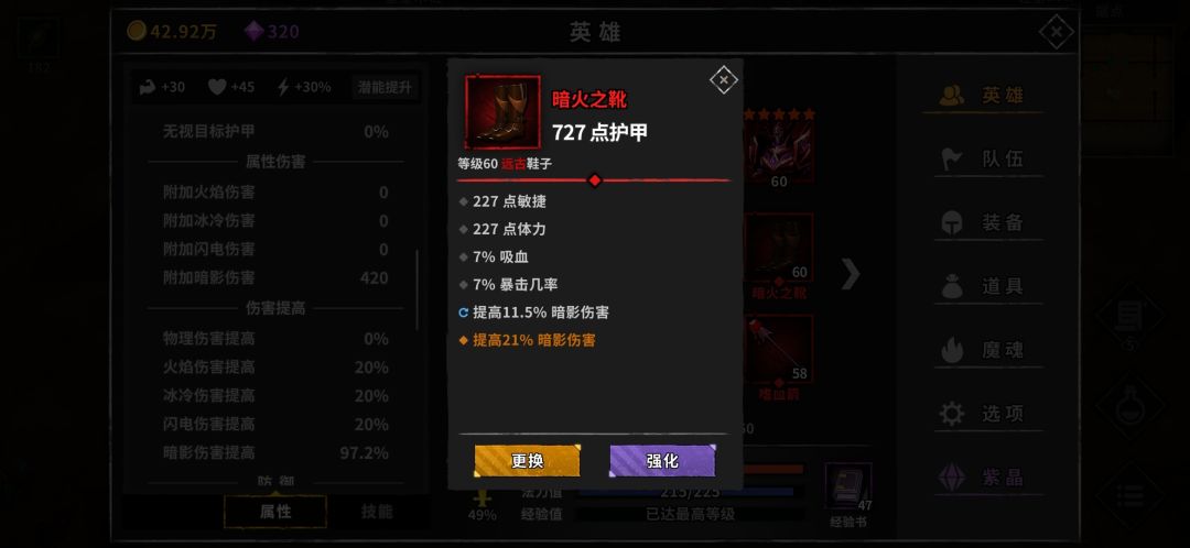 (感觉有个很奇怪的地方,如果装备没有附带暗影加成,只用红装词条和宝石堆上去达到同样数值暗影加成,实际效果并没有装备有附带暗影加成的伤害高。具体表现是最终伤害偏低,叠加到最终伤害需要的时间大幅度延长,或者是暗影伤害完全叠不起来。