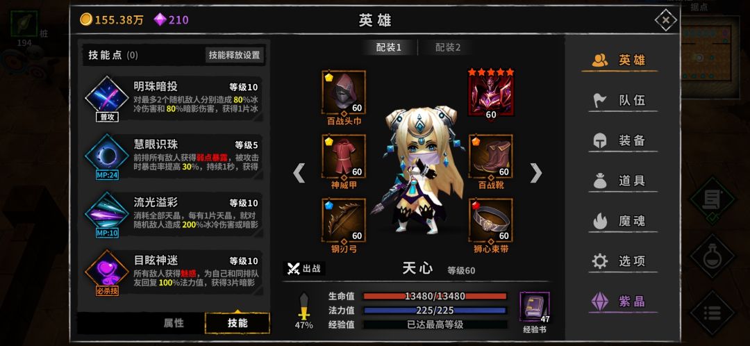1星魂珠,稳定输出,光耀珠。提高伤害,龙翼石。吸血,怨魂珠。
