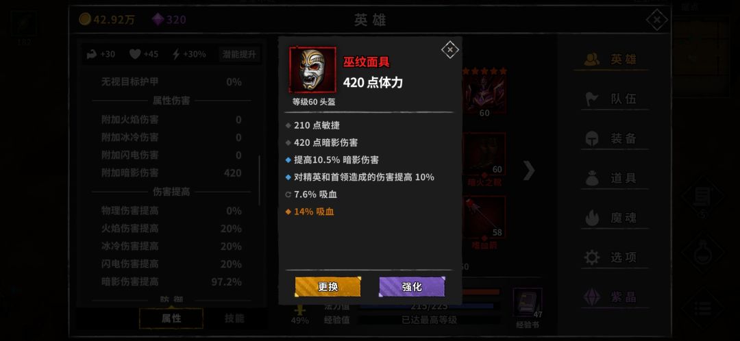 最少需要35%吸血和50%暗影加伤,才能形成稳定暗影伤害提升。