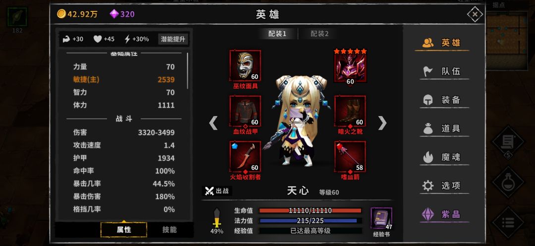 装备先考虑存活,其次,便宜,所以,除了武器和副手,其他都是红装。