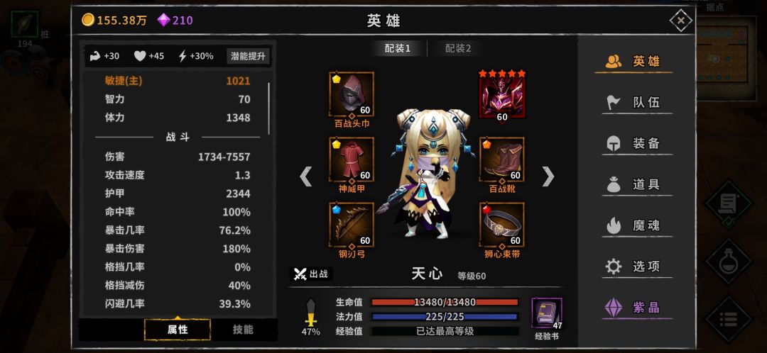两进阶敏捷,三一马当先(最低配,天心队长)。