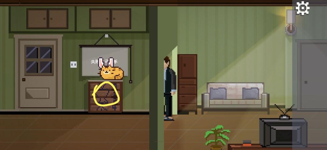 宝箱需要密码,根据墙上的提示,密码是525,拾取橘猫,拖动到妻子身上。