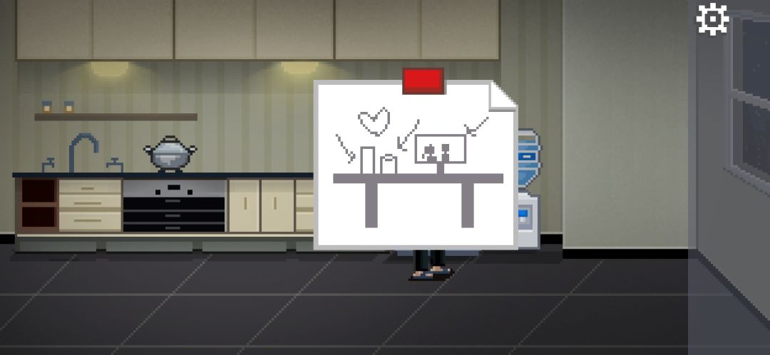 地上有一纸团,上书“好像有毒...”,桌上的排骨汤是解药,拾取排骨汤拖动到妻子身上。
