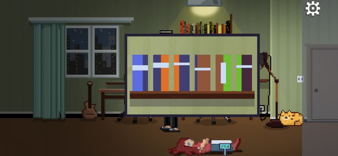 进入书房,给吉他装上弦,吉他上有2个圆形;拼好乐谱,乐谱上有三个正方形。给客厅里的留声机输入“233”,飘出三个音符,结合乐谱,在吉他上演奏245414543465,我第一次玩的时候解不出谜题,一个个硬弹的你敢信?
