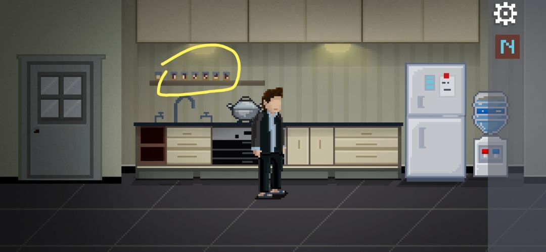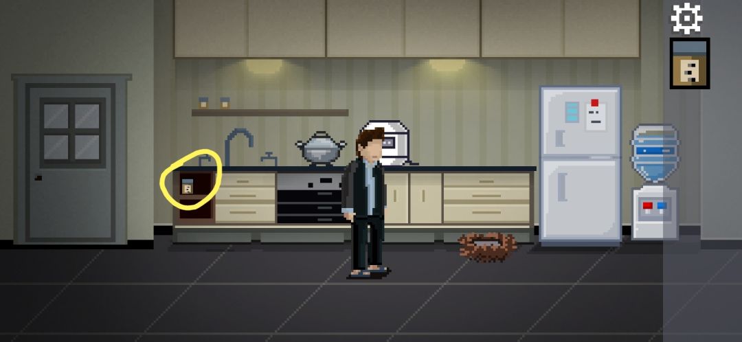 捡玻璃杯,往右走进厨房