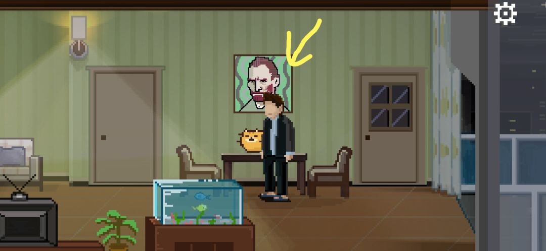 客厅墙上的画后面,输入窗户上显示的“coke”获得可乐,输入墙上散落的“chip”获得薯片,这里注意没拼电脑桌上拼图就输入coke,获得的可乐会导致游戏失败。根据冰箱上的纸条,把可乐薯片摆在电脑桌上,获得光盘,插入电脑,选择右边,movie。如果选TapTap游戏会失败,得到一个成就。