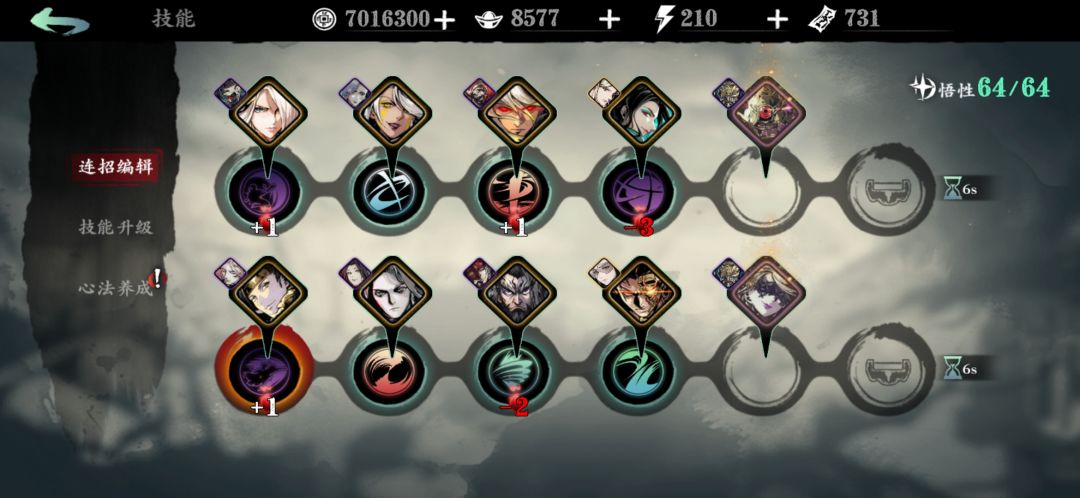 我平时用的都是图1这套,黑剑是1紫的,木桩7100万,连招大概失误两次这样。