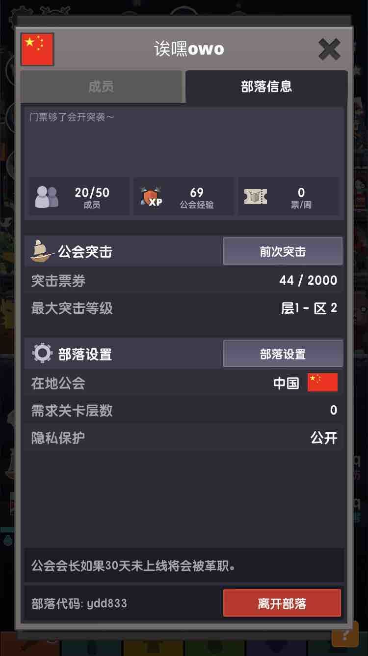新建的部落 门票够了会开突袭 欢迎各位萌新大佬加入