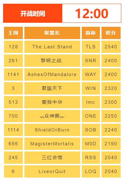 (以下开战时间为北京时间,换算成服务器时间需要-8小时)