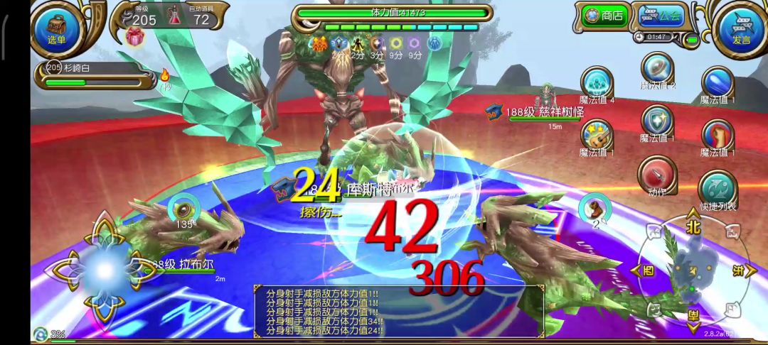 召唤两只树精:当boss血量打掉2/3时,boss会回到场地中心举起左手向下挥动的动作然后召唤出两只树精,然后对仇恨目标打出大范围大触碰面积的陨石攻击(附带异常:颠覆)
