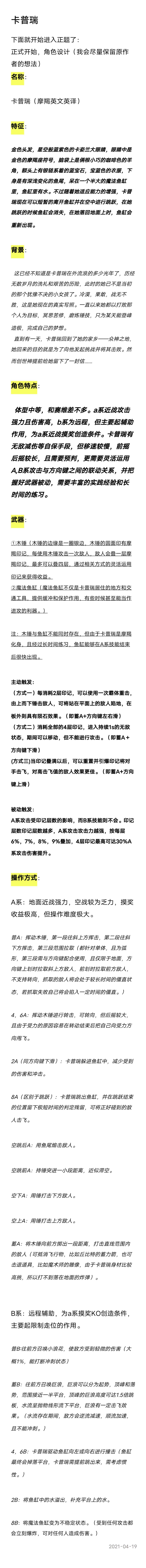 卡普瑞角色设计与完善