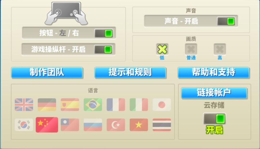 点开游戏主界面右上角设置,可以看到开启云储存,本咸鱼是绑定的谷哥号