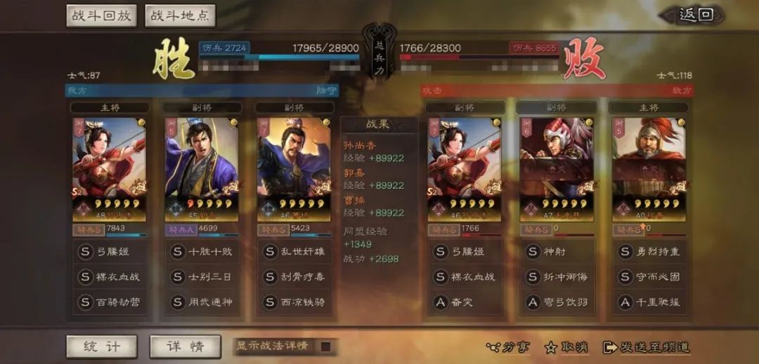 孙尚香(主):裸衣血战+百骑劫营(全武)
