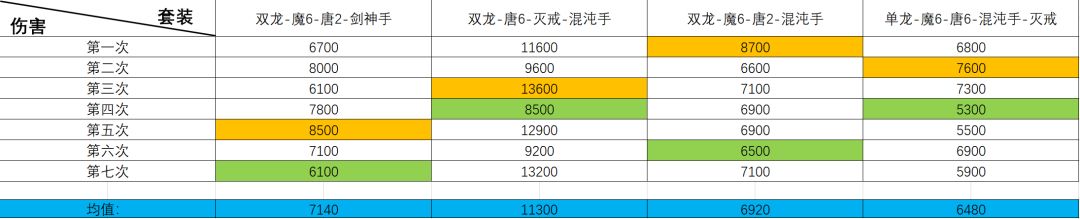 测试方法:打3桩,每一套装备都打7次,每次只打一套上下链(唐门不提前叠加,0层唐门分身斩起手),去掉一个最高和最低伤害,剩下5个值取均值。除了装备外,其余操作均一样,都为下链起手。如果觉得数据有问题可以咱们私下我发录屏和截图。(个人测试, 数据量不够多,微小细节可能不够准确,但是能看出来结论)