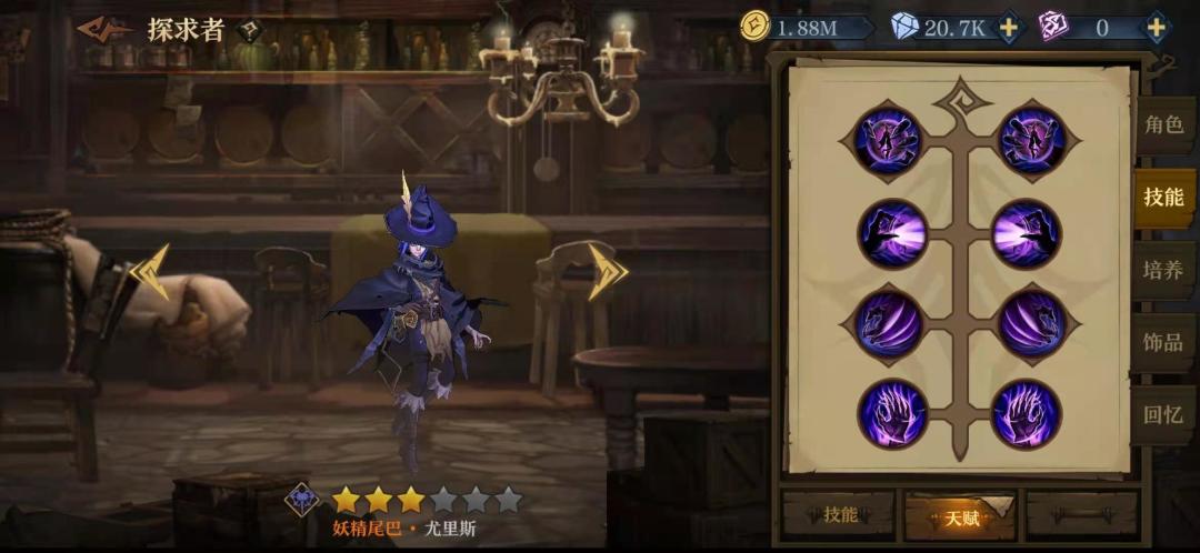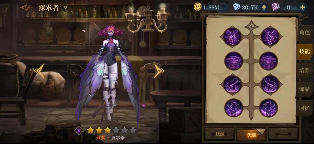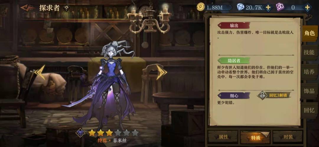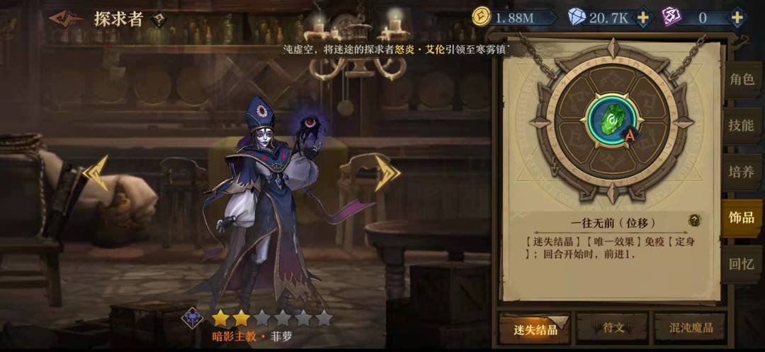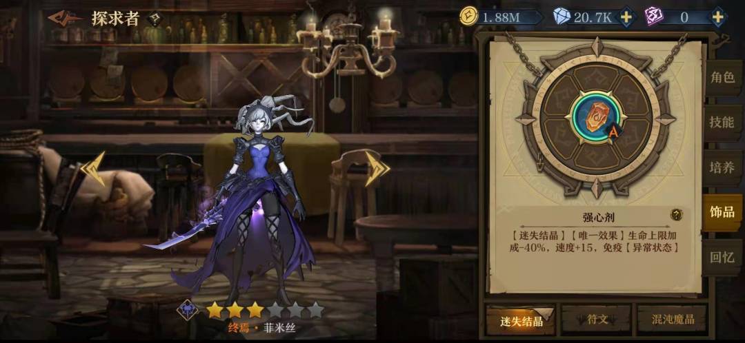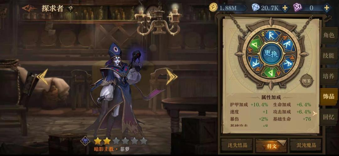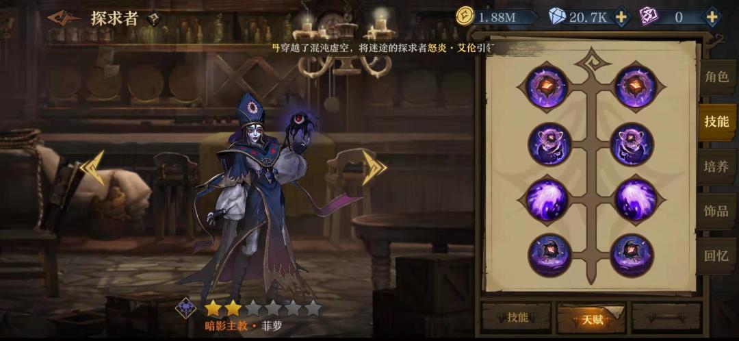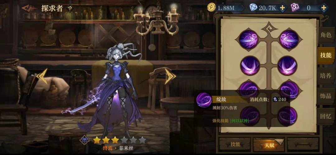 在以菲米斯为核心的队伍里,他的技能加点是右右左右,关于灵魂链我一开始选的加攻击,但是更多时候因为在关键时候非罗没放出链子导致我的输出挂掉了,所以还是舍弃了那百分之十的攻击。3技能的选择也是看实际情况了,但是我在实际使用中非罗很少能闲到放3技能,他总是要么在加链子,要么给公主加印记。给他本身加百分之三十血量也让他加的盾更厚。