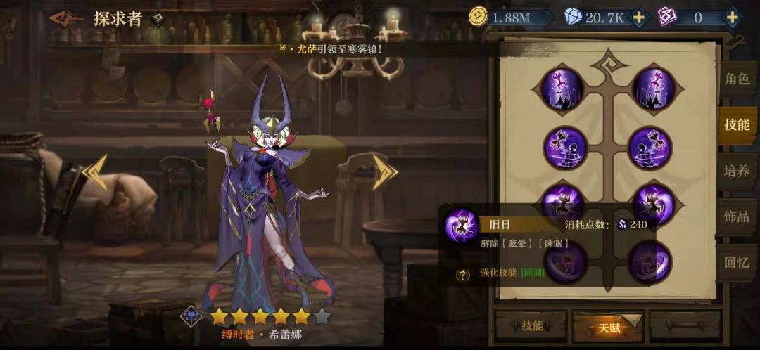 技能加点我一般选择右右右右, 流血和毒的怪还是挺常见的,复仇阵容也没有可以驱散的。他晕眩的概率并不高,击退能帮希雷娜更好放衰变或者菲米斯更好输出。有菲米斯在还是选择速度更好,而更多的护甲也意味别人更多的护盾。