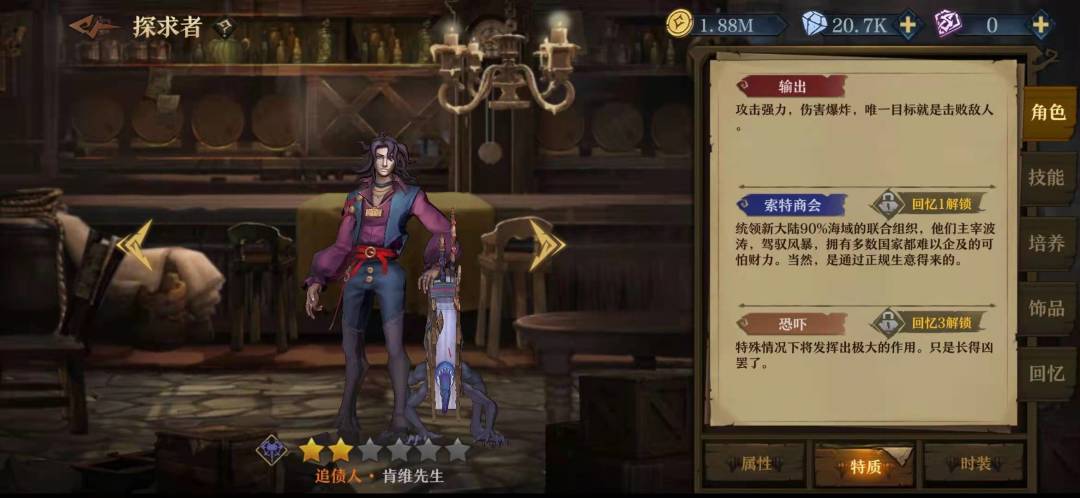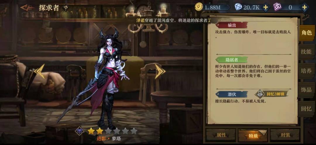抽到了但是一直没用,我完全搞不懂应该怎么用,他是该放三四号位的,攻击倍率很低,唯一的控制技能是拖拽,每回合追击两次还附加吸血,还能放AOE给每个怪增加易伤。