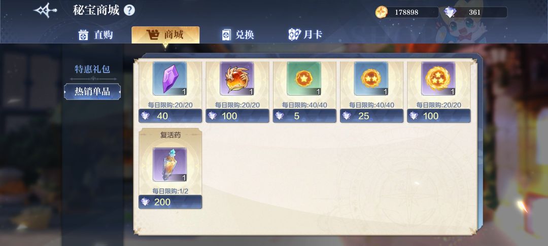 复活药除了每周任务的一个商城里每天都能买两个
