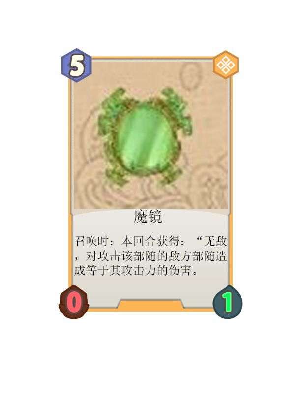 偏恶搞向的卡,设计成了类似仙三经典道具“烟月神镜”的效果(这个怪物在游戏里也能为自己提供同意的状态)