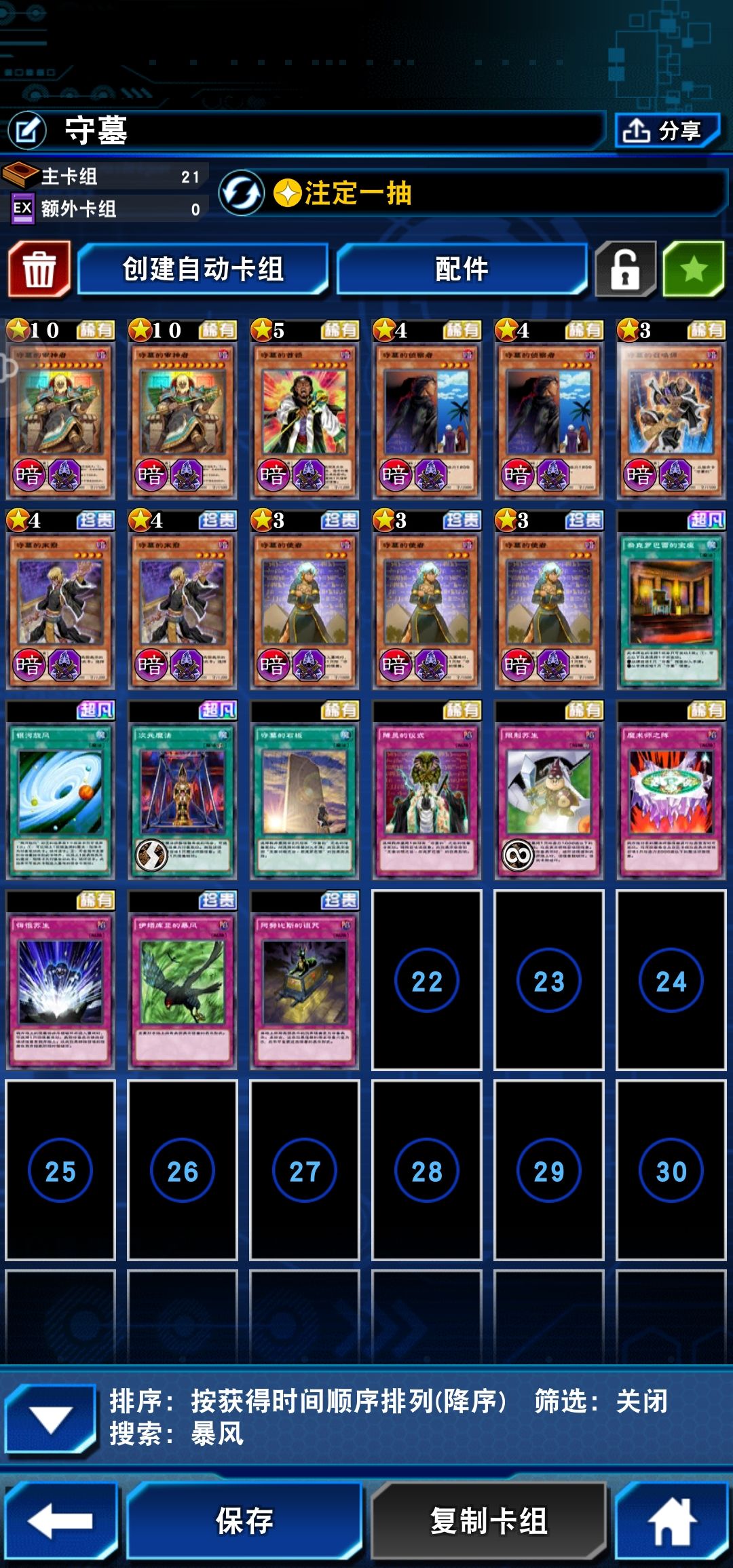 两轮大包的完整守墓当然是最好不过,但一轮大包也是可以玩的,核心思路是反复拉出光头没有降灵的仪式可以用各种苏生,而且可以从牌组拉出光头的卡几乎占了一半,光头满三固然好,但是没有也没关系,实测是可以玩的,只要不是内战,强度还可以