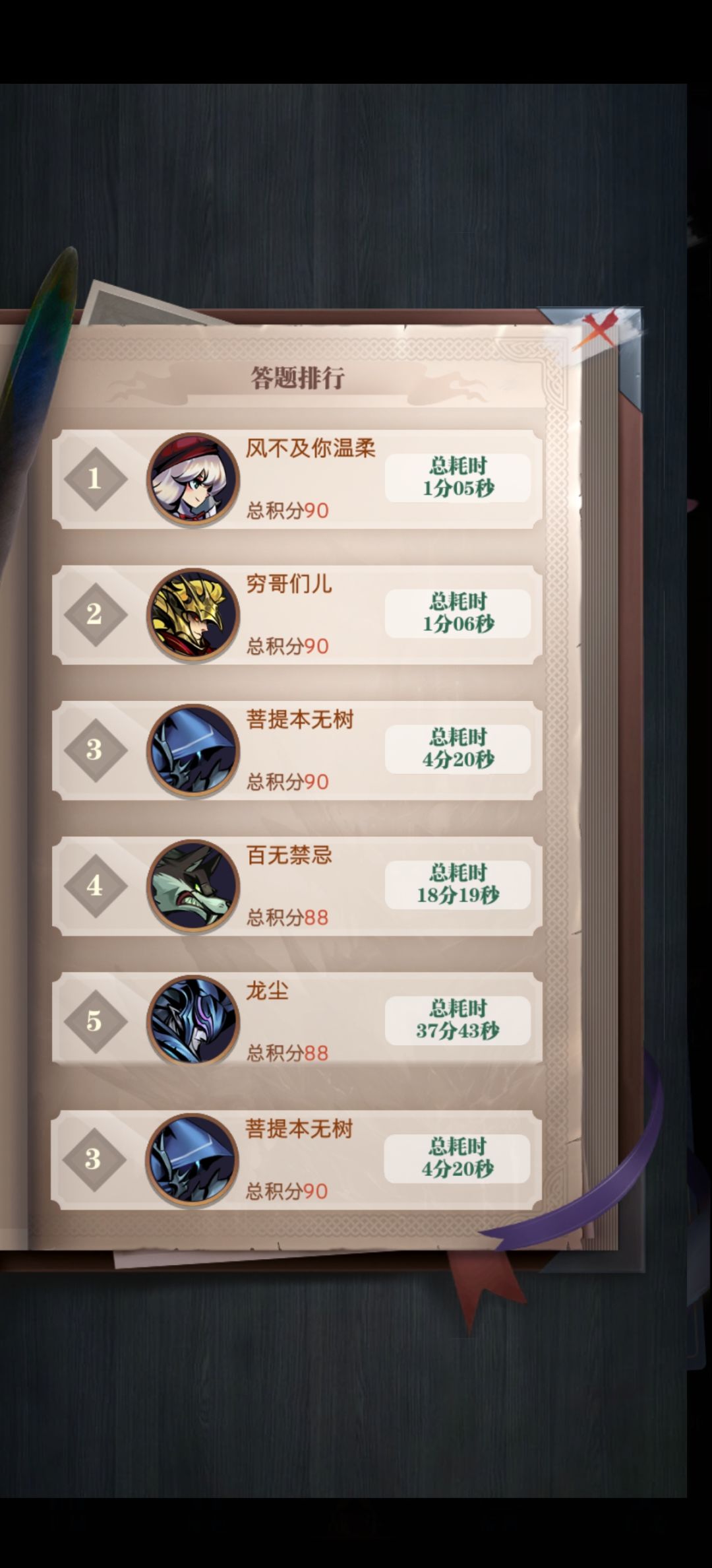 其三,推出登入,或断网,或关闭游戏,有大智慧者亦可卸游再下,而后,重新登陆,可观答题数与对题数,或背包有无宝箱,以此确认答题是否有效。