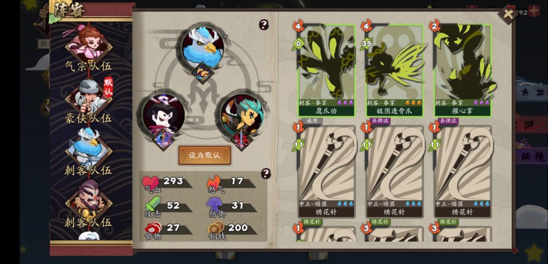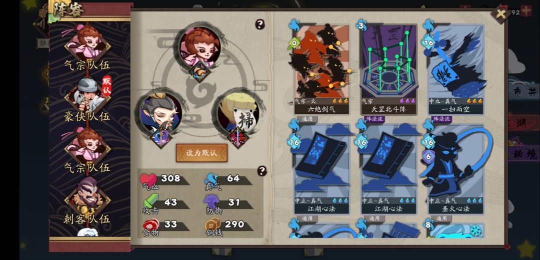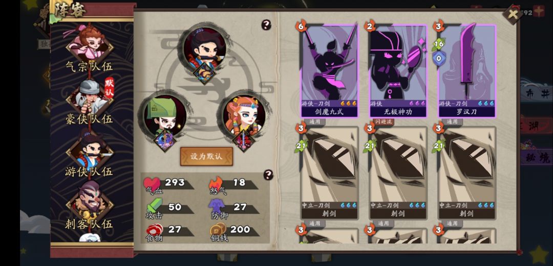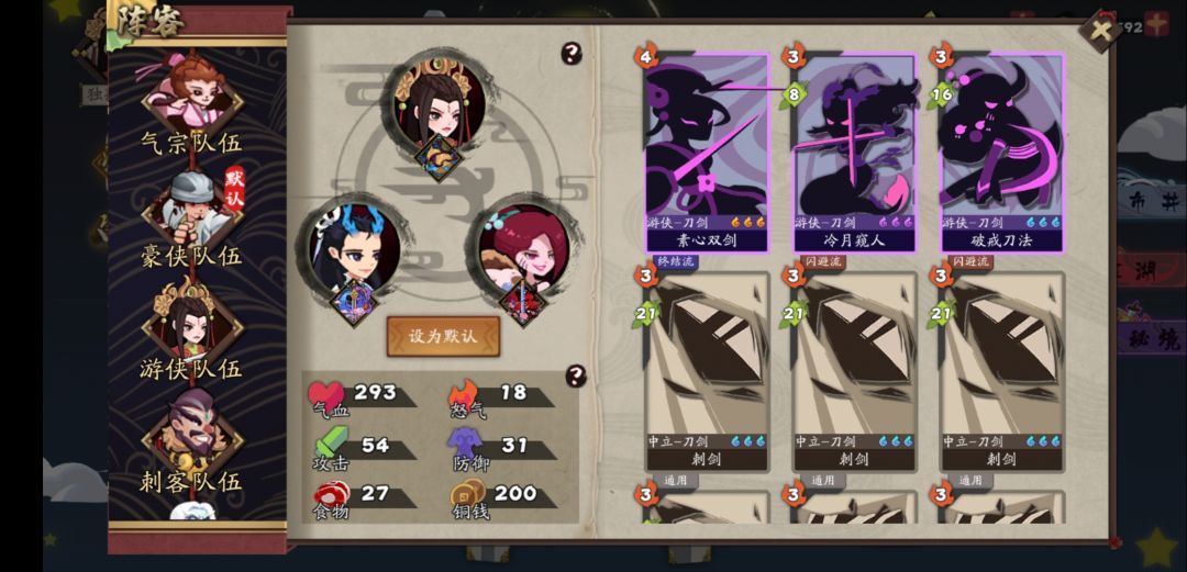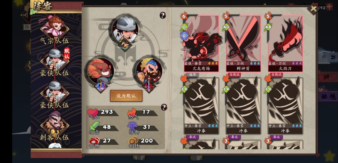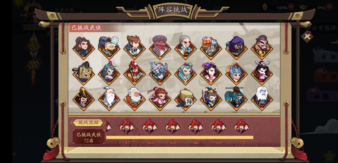 每张图片里带头的武侠都代表了一种打法,如果想72全通,带头武侠基本上只能这么安排。