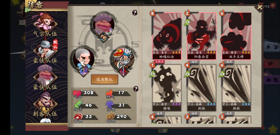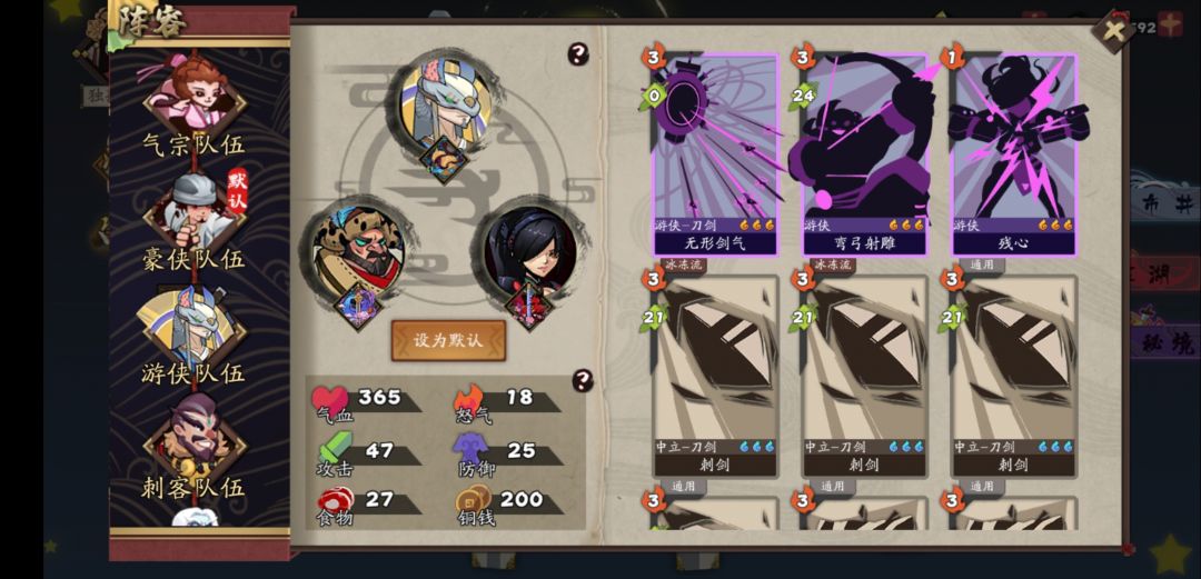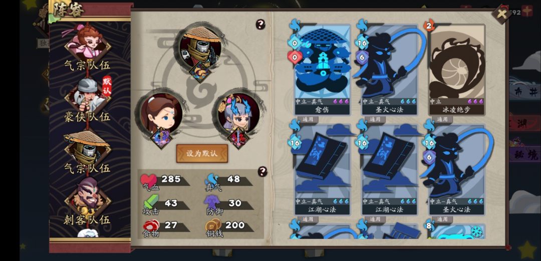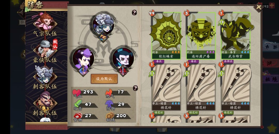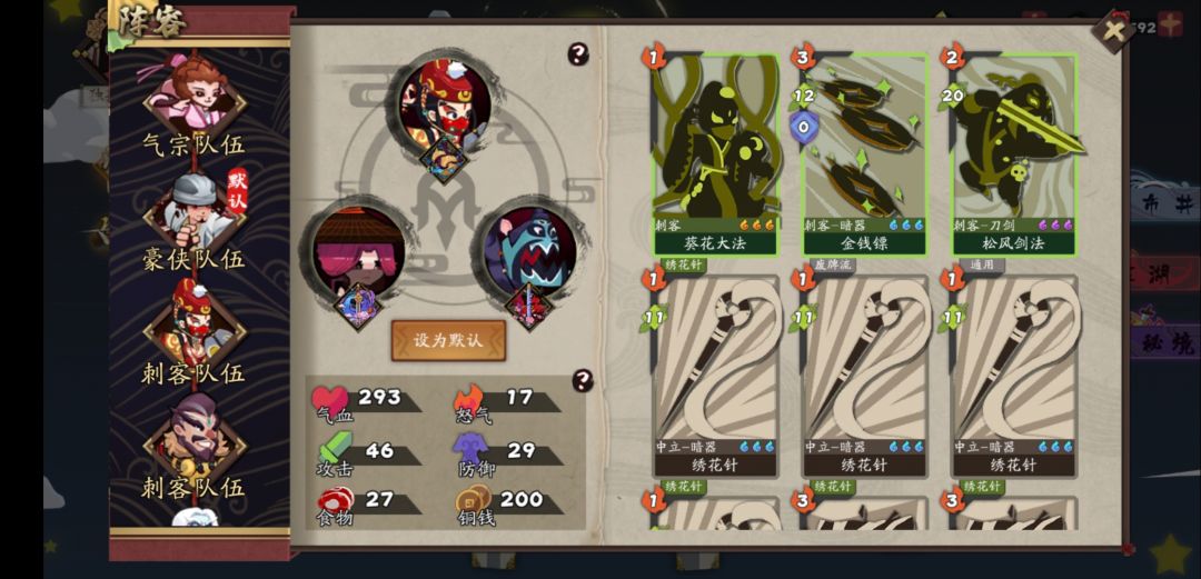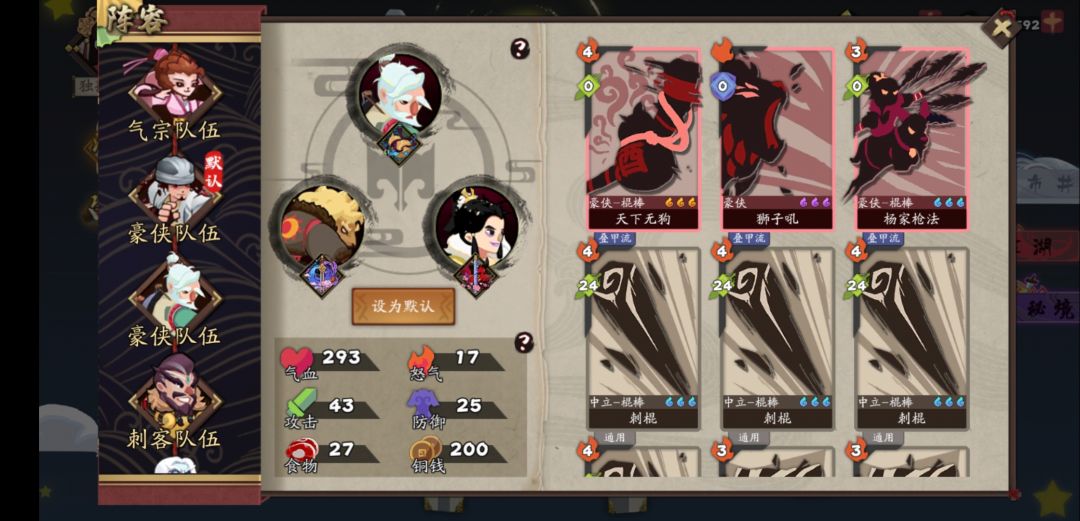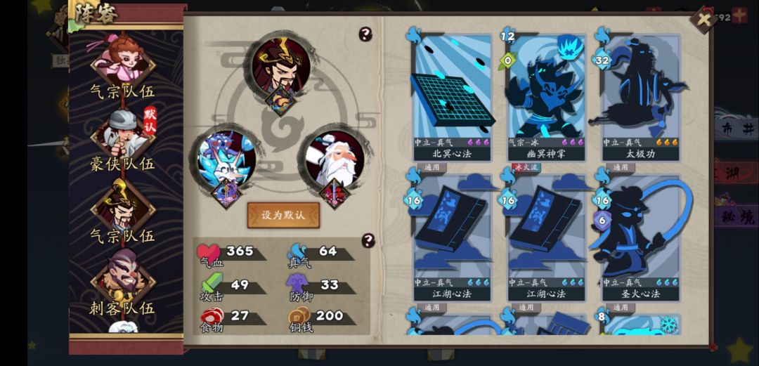 每张图片里带头的武侠都代表了一种打法,如果想72全通,带头武侠基本上只能这么安排。
