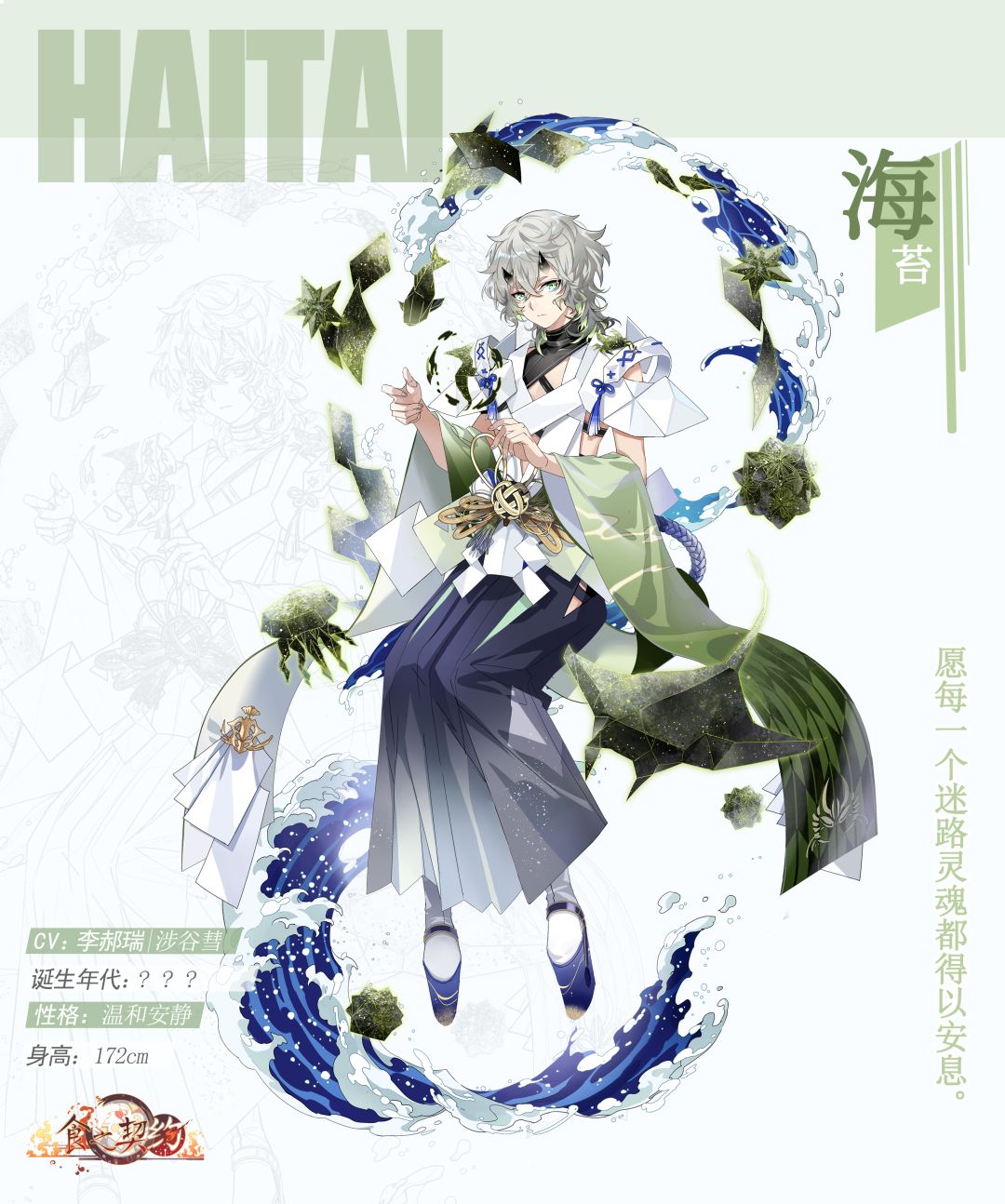 海苔是位SR飨灵,是一位性格温和体贴的少年。