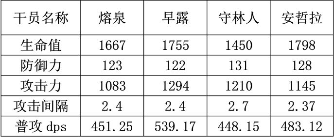 如图,熔泉的普攻DPS不算太低,虽然与早露有所差距,但是比起守林人和安哲拉基本持平。而且破千的攻击力也使得她在大多数情况下,都能起到较好的杀伤效果。