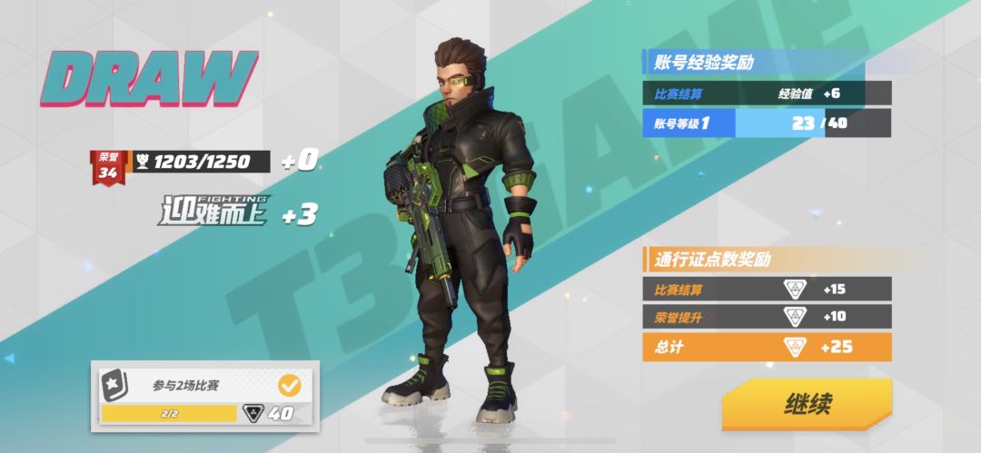 △当某场对局触发“迎难而上”,战斗结算界面会增加“迎难而上”相关奖励标志。
