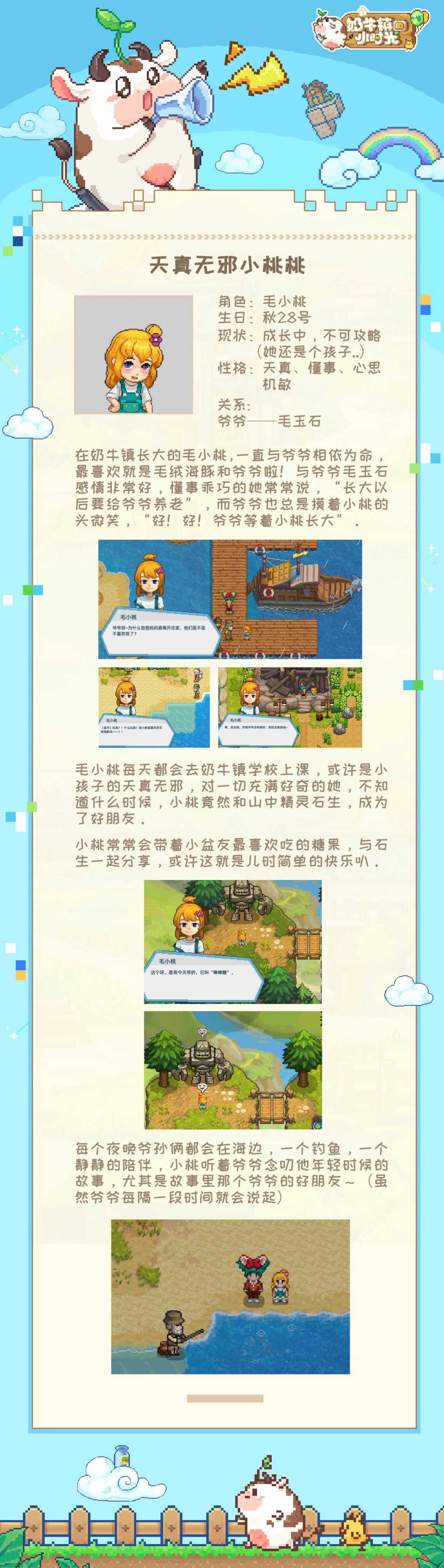 本期要介绍的NPC都是咱们的老熟人哦!游戏中的你穿越时空回到小镇,第一眼见到的是谁呢?不就是我们和蔼的村长爷爷和可爱的小桃桃嘛!熟悉归熟悉,但小伙伴对他俩的具体了解又有多少呢?还是跟着球球来康康吧,多得是你不知道的事哟~( ゚▽゚)/